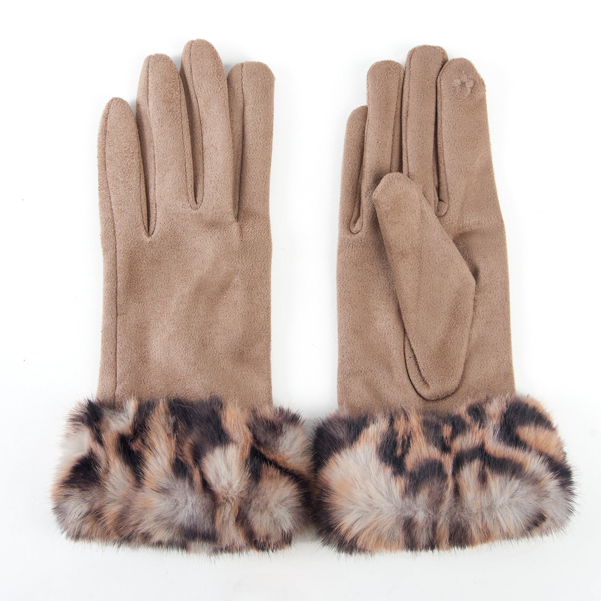 Stay cozy in style with the Ryan Animal Print Faux Fur Gloves. Featuring cozy fun faux fur animal print detailing at the cuff and touchscreen compatible fingertips, these cuties are the only pair of gloves you'll need this winter season!