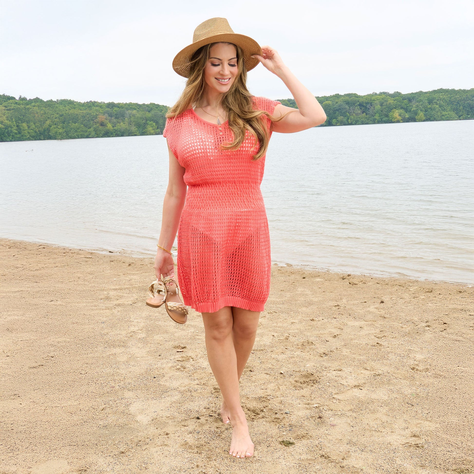Easy and breezy! The Santorini Open Knit Cover Up is a gorgeous, easy to wear, lightweight cover up with flattering fitted waist and classic design. Perfect for everything from a day at the beach to indoor lounging!