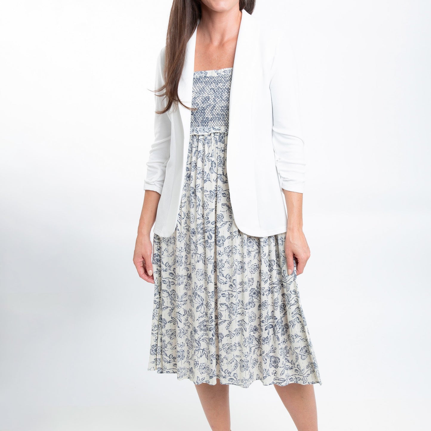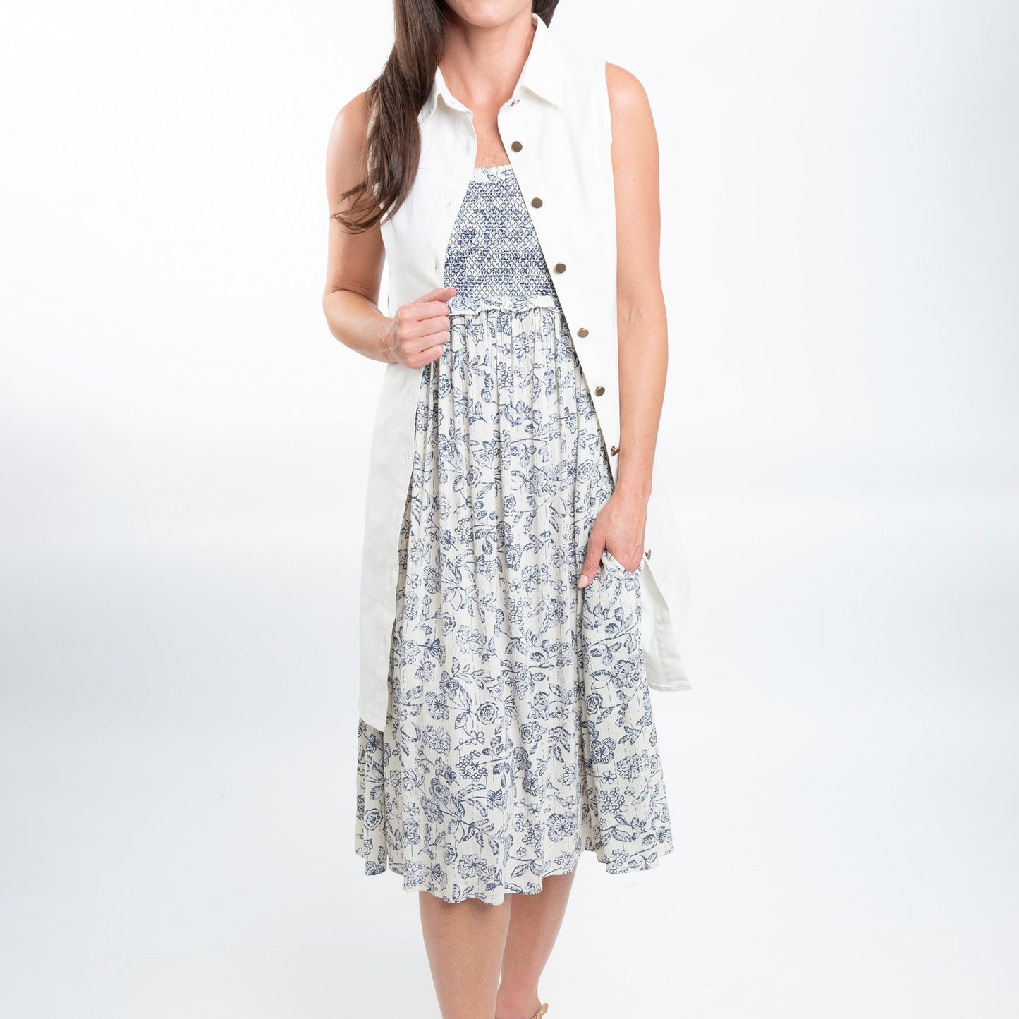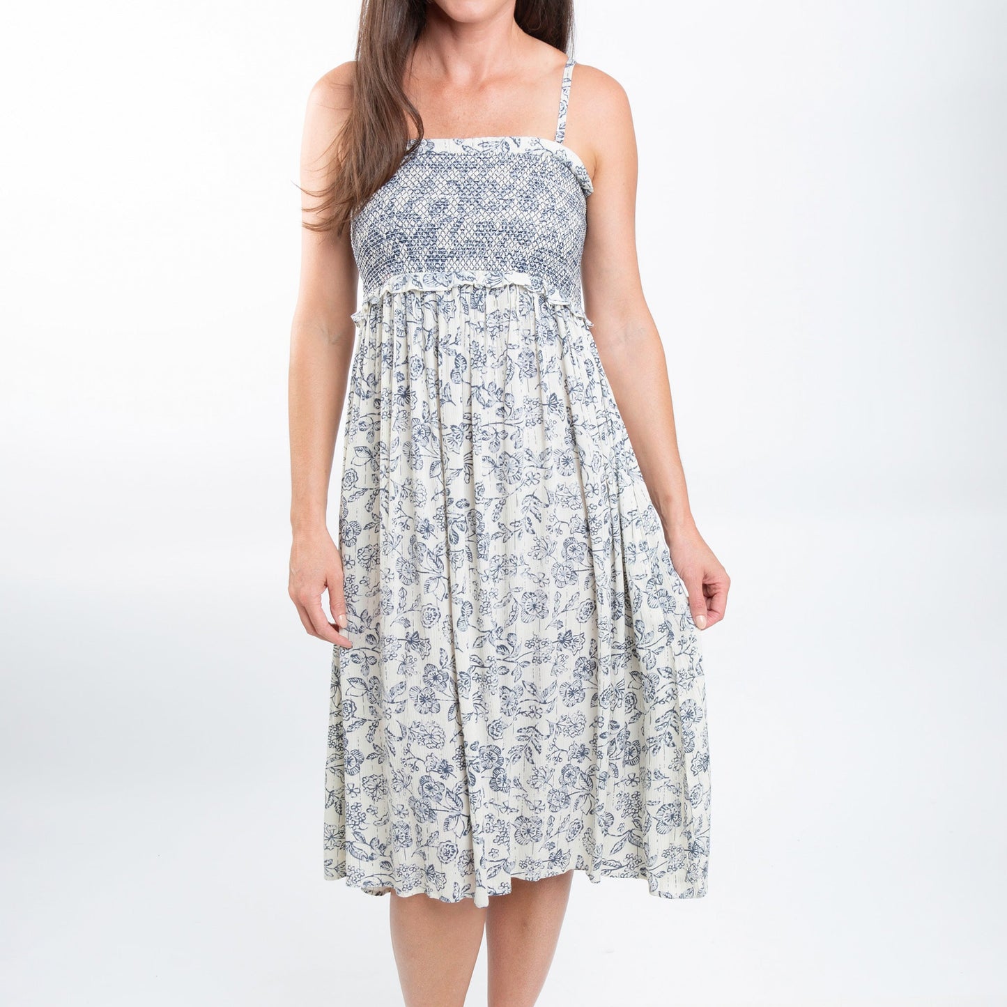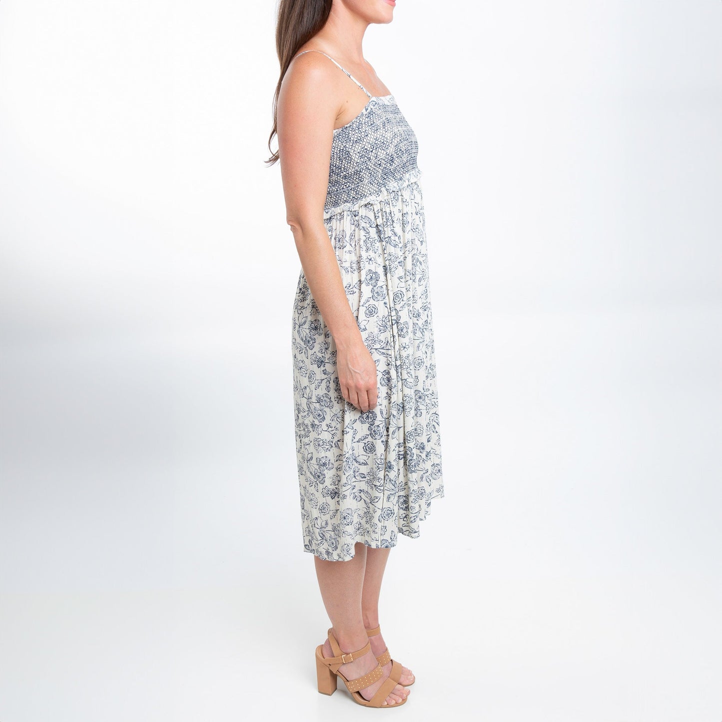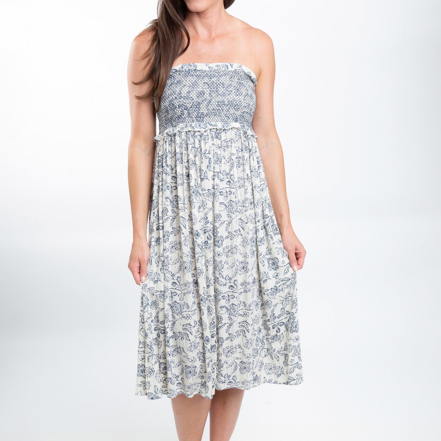 Your new favorite dress! Featuring a Toile De Jouy Floral print with removable straps and a versatile midi length, the Sarai Smoked Midi Dress is perfect for those warmer days!