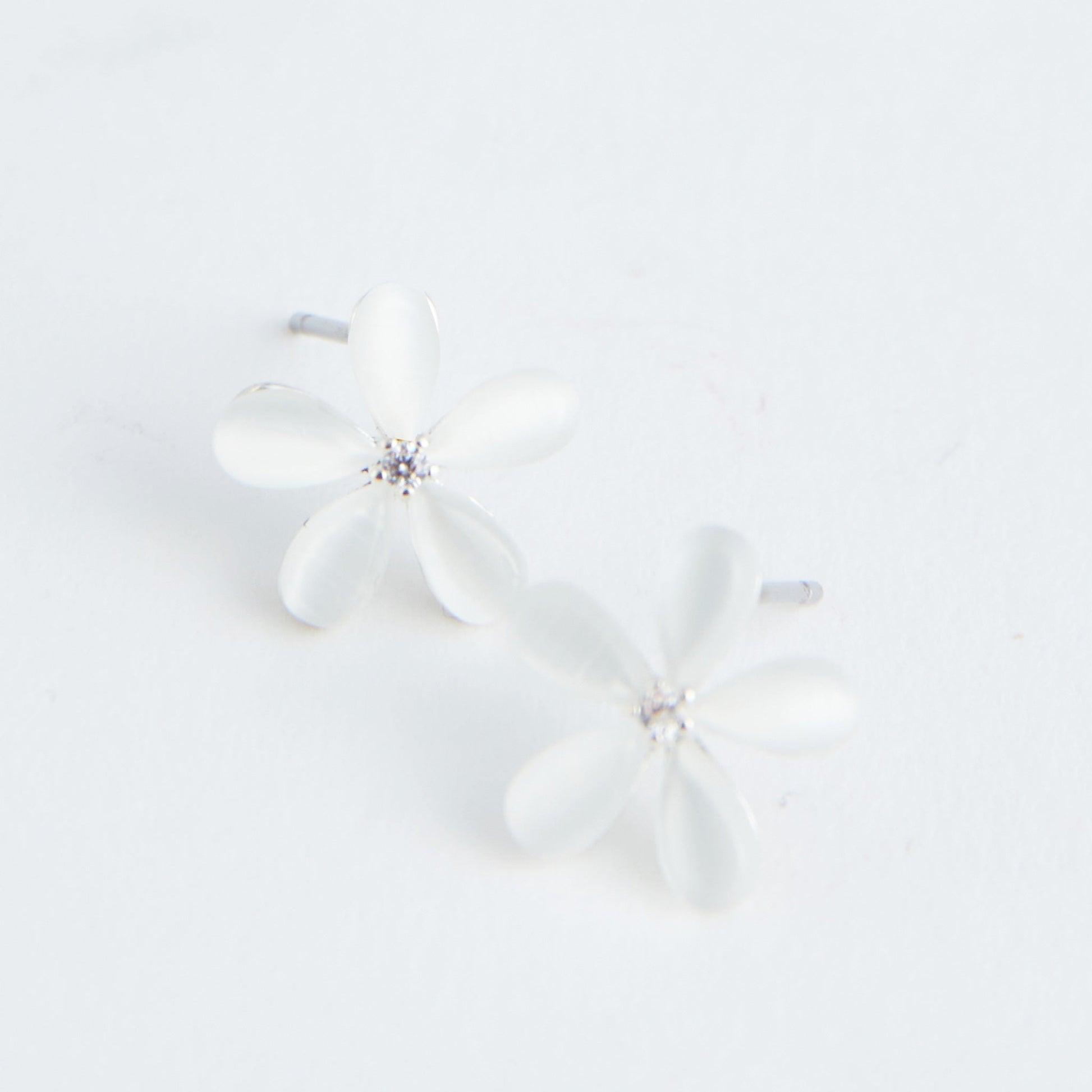 Add a bit of sparkle with our Silver White Cat eye Flower Earrings. Featuring shimmery white cat eye stone set into sweet silver flowers, these cuties bring delightful whimsy to any look. Hypoallergenic and perfect for sensitive ears.