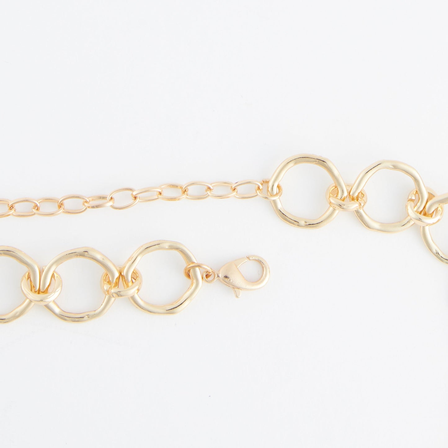 Sophisticated, sculptural, and endlessly versatile — the Simone Linked Necklace brings modern artistry to classic chain style. Each open link is crafted with a subtly irregular, hand-shaped design that adds depth and dimension, catching the light beautifully from every angle. The radiant gold-tone finish gives this piece a polished yet organic look, perfect for dressing up or layering with other necklaces for a statement stack. Measuring 16" in length, the Simone Necklace sits elegantly along the neckline, making it ideal for pairing with both high and low collars. Its lightweight feel and bold presence make it a go-to accessory for any occasion, from everyday chic to evening sophistication. Designed to stand the test of time, this necklace combines contemporary texture with timeless charm — a must-have for those who appreciate understated luxury and effortless style.