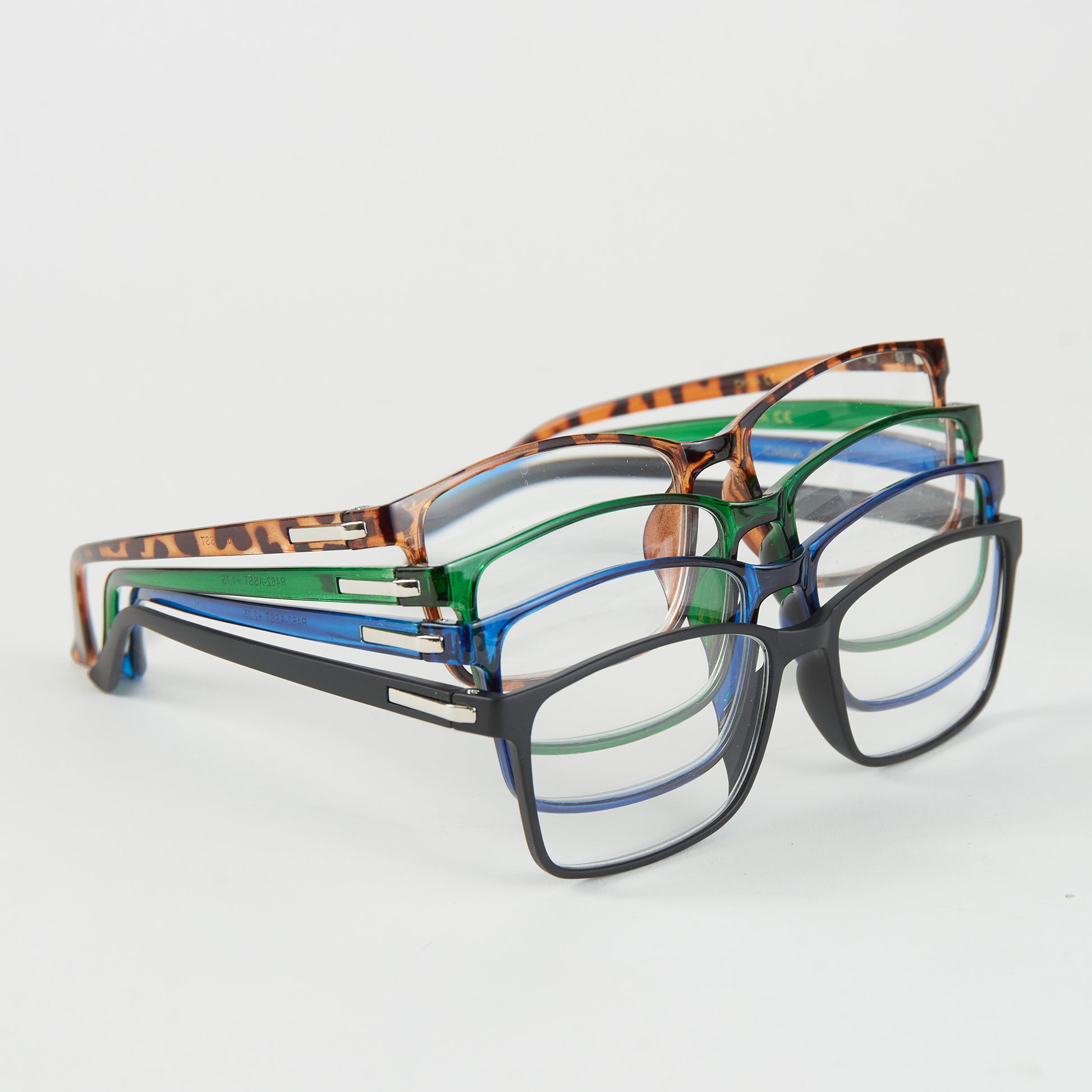 Stock up on everyday style with our square bamboo temple readers assortment featuring 4 pairs in a variety of best-selling colors. Each pair offers a trendy square frame silhouette, with an assorted lens strength of 1.50, 1.75, 2.00, 2.50, and 3.00