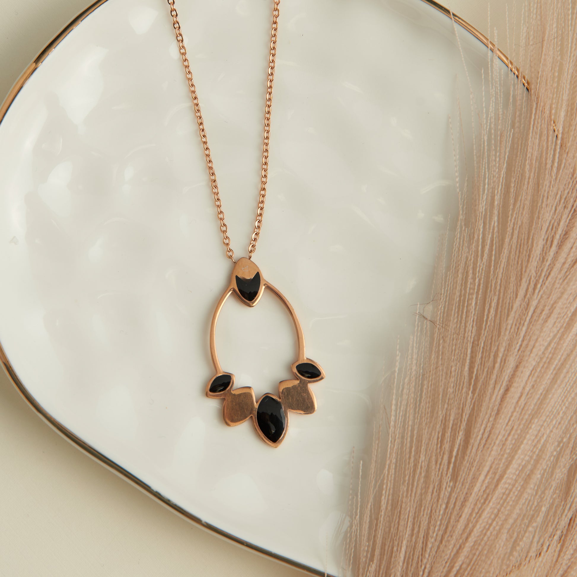 Ss Cut Out Tear Nk-Rose Gold/Blk