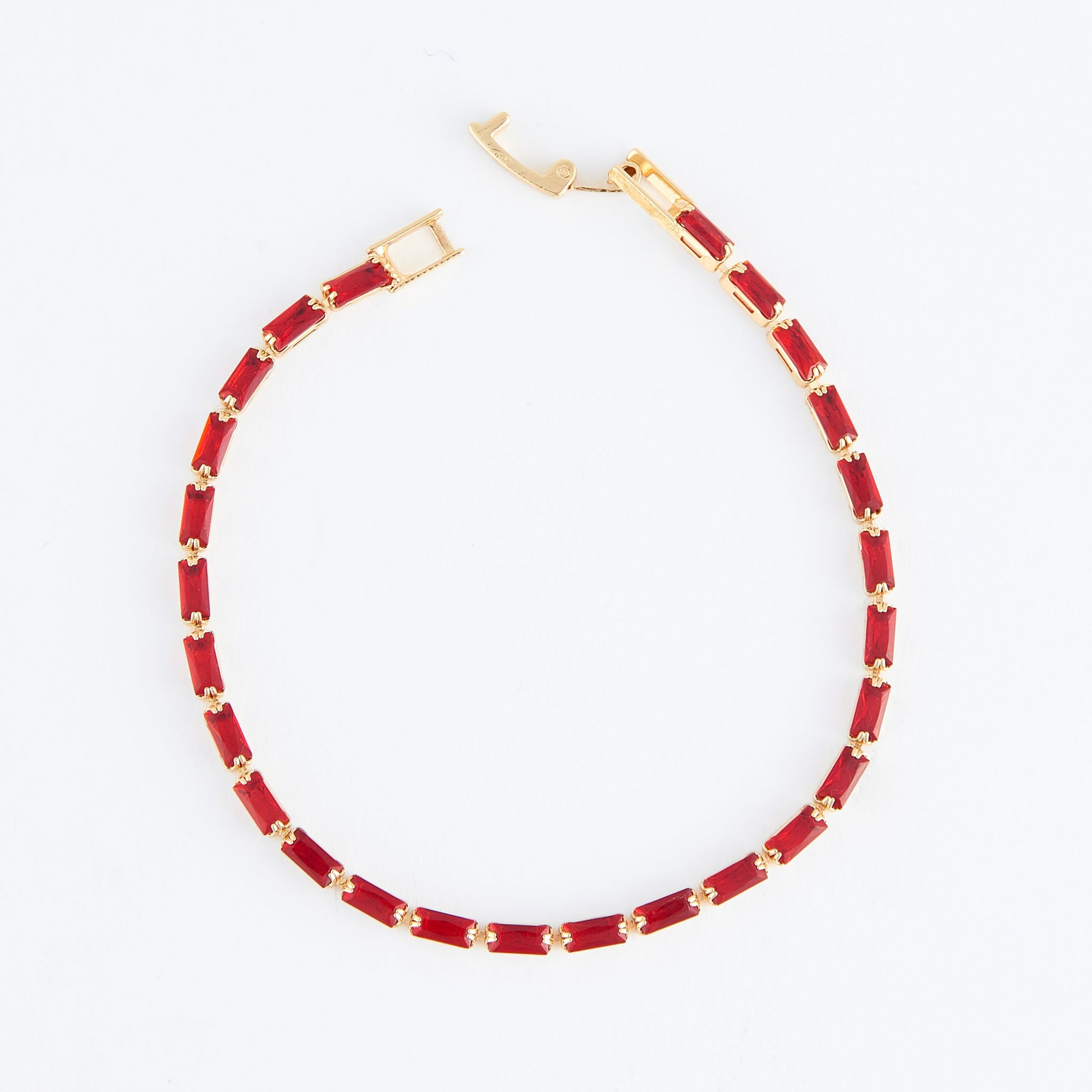 Stay festive and fun this holiday season with the Stella Dainty Baguette Gemstone Bracelet. Featuring vibrant red baguette glass gemstones and fold-over clasp, this cutie adds cheery flair to any look.