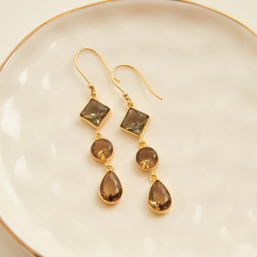 Add some color to your day with the Tahani 18k Gold Linked Gemstone Earrings. Featuring vibrant blue gemstones in fun linked shapes and dangling from 18k gold plated fish hooks, these beauties will make your look pop.