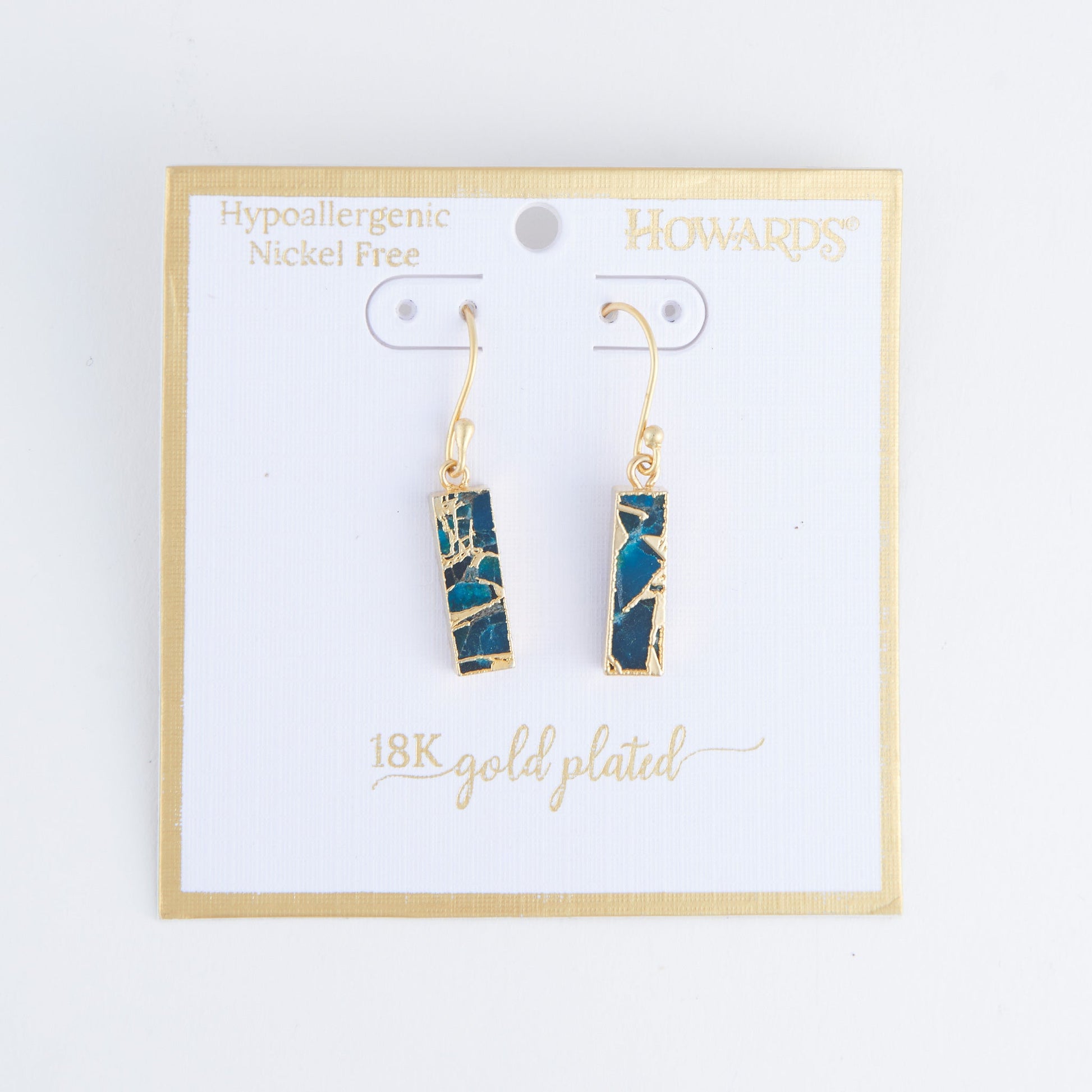 Add some color to your day with the Tahani Textured Stone Bar 18k Gold Earrings. Featuring vibrant textured genuine stone pendants hanging off 18k gold plated fish hooks, these beauties will make your look pop.