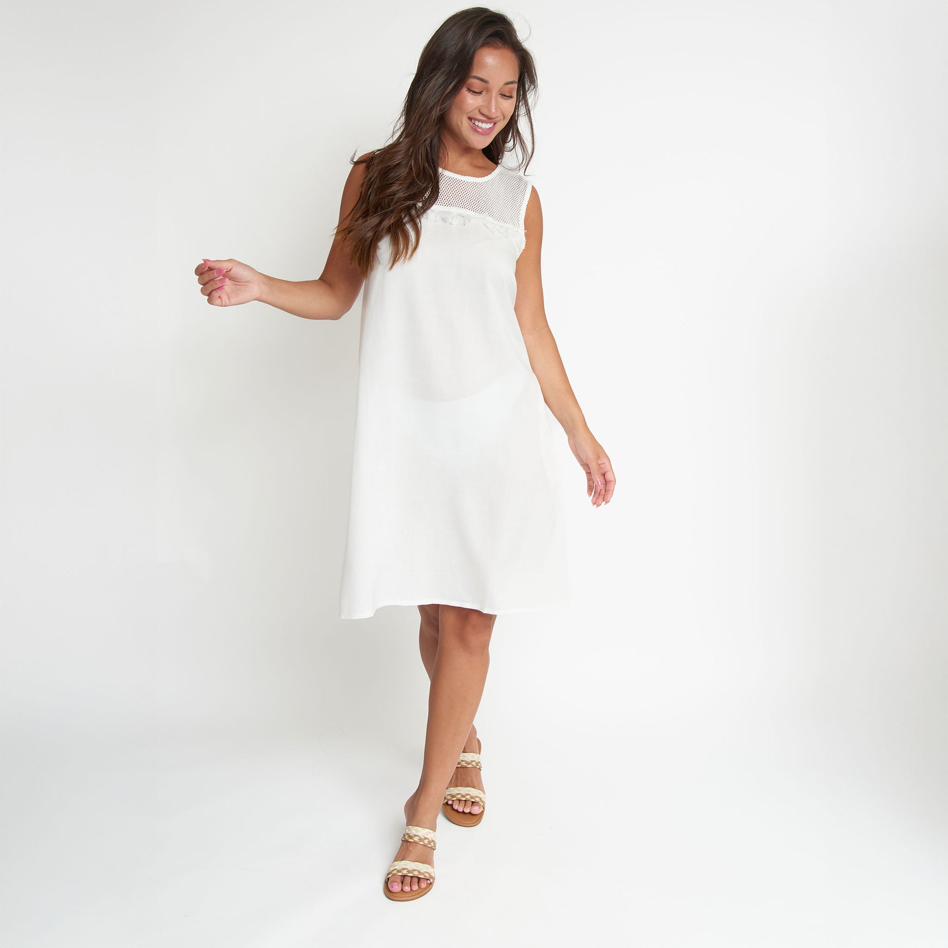 You'll be beach ready with the Tahlee Tank Dress Cover Up! Featuring a crisp white tone, this modern take on a classic cover up boasts functionality, a flattering design, and pockets, making it a definite summer staple.