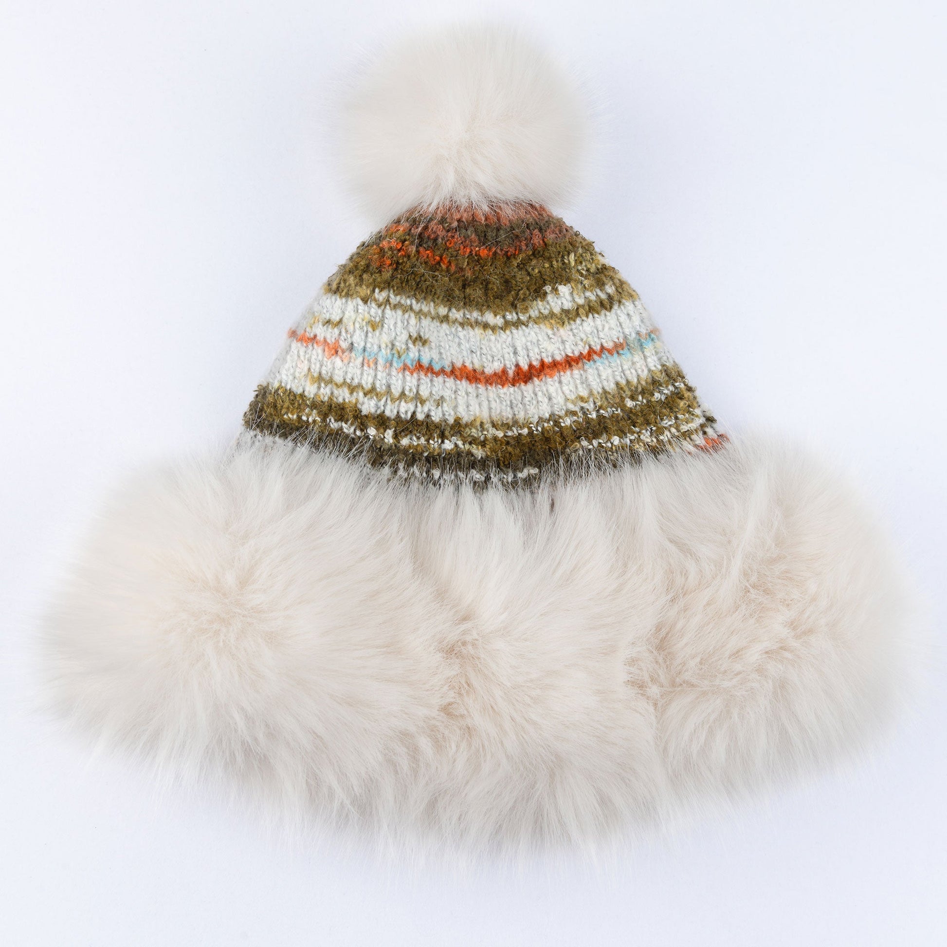 Stay comfy and cozy with the Thea Fur Pom Beanie. Featuring soft fur along the bottom with matching fur pom and classic winter-themed space dyed knit, this hat will keep you stylish and warm all winter long.