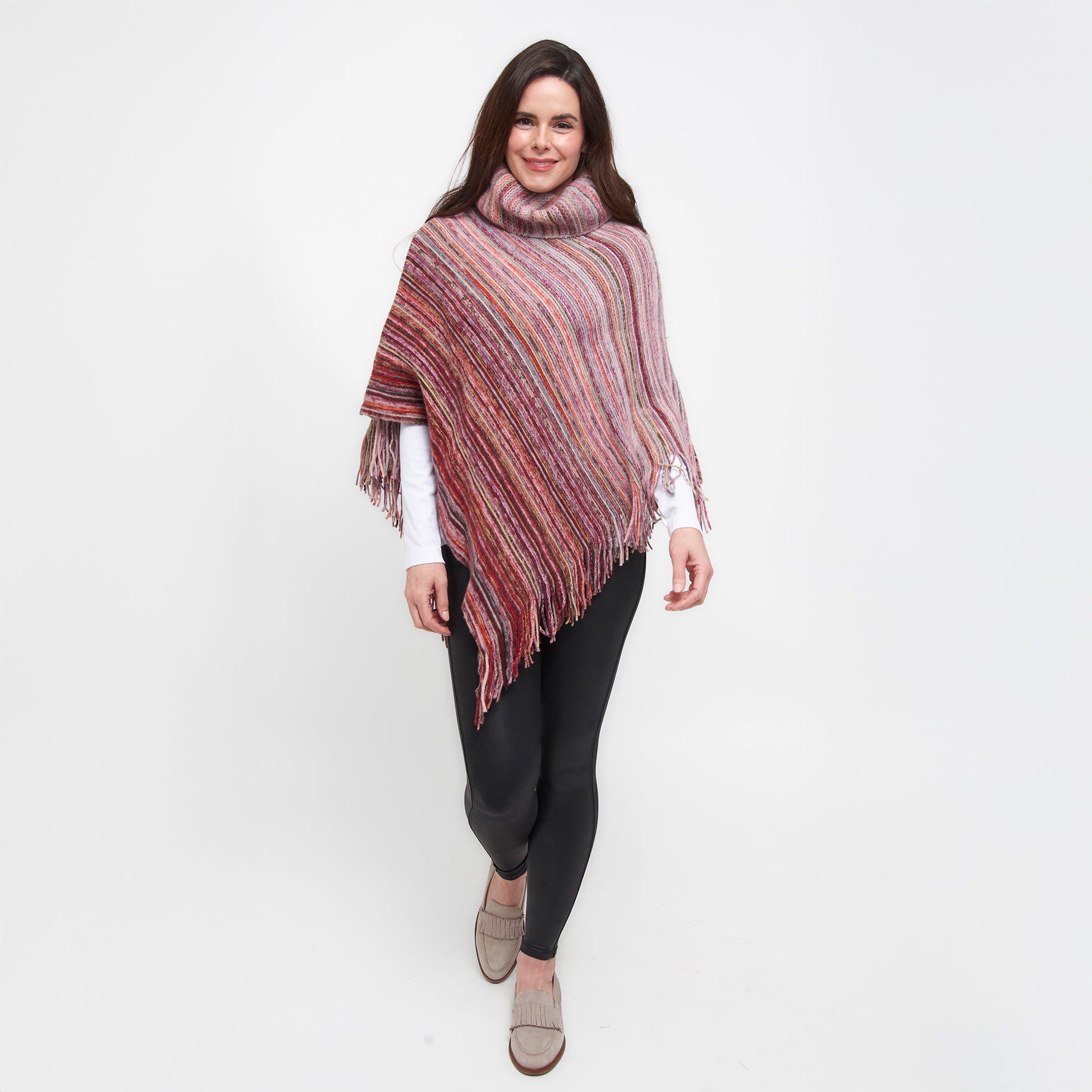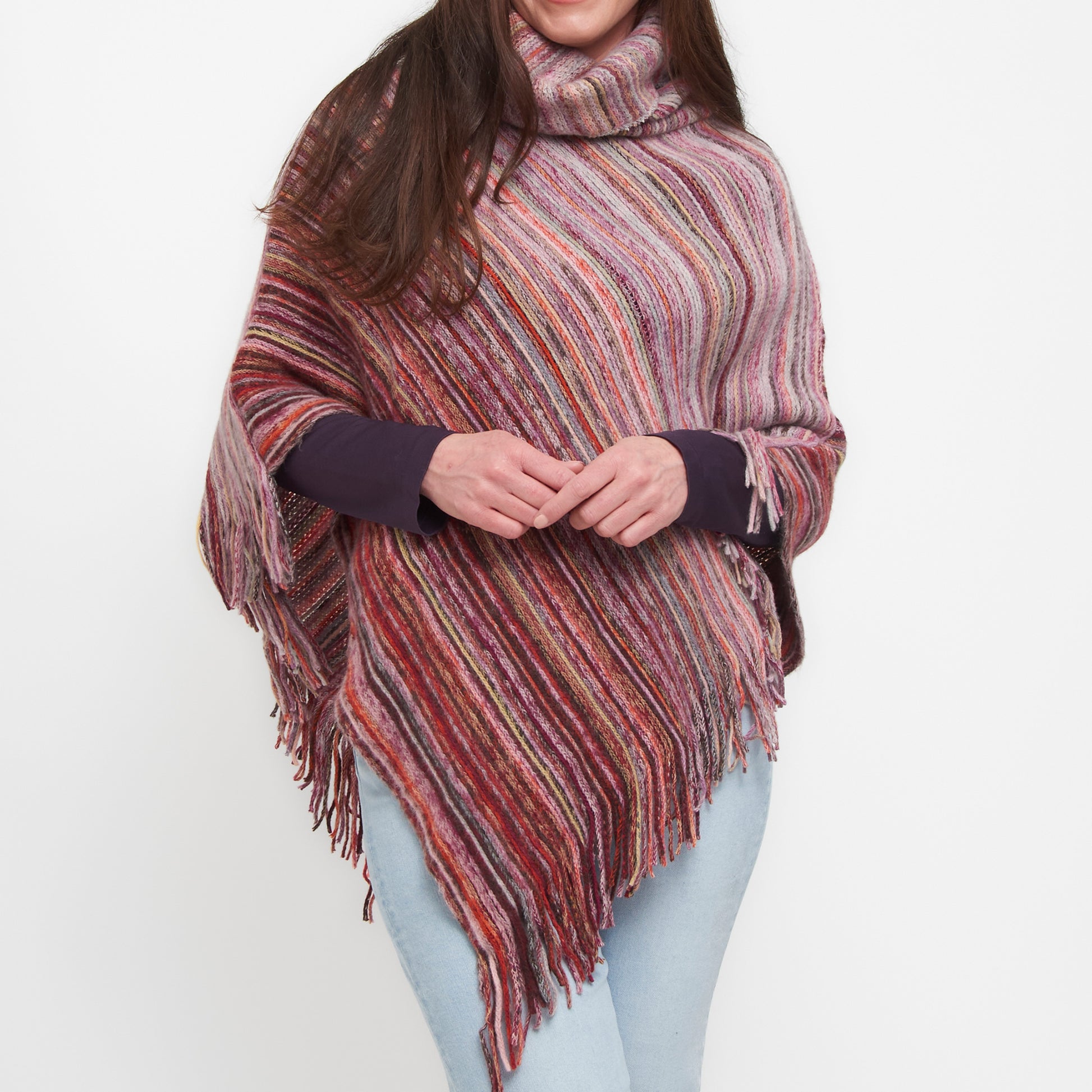 Tiya Striped Funnel Neck Poncho
