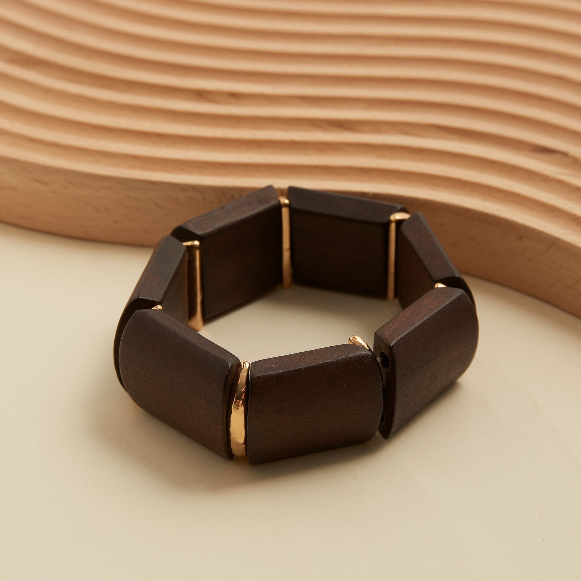 Add a bit of artistic flair to your look with the Tova Wooden Cuff Bracelet. Featuring beautiful dark wooden panels and casted silver spacers, this elastic bracelet is easy to wear and easy to love.