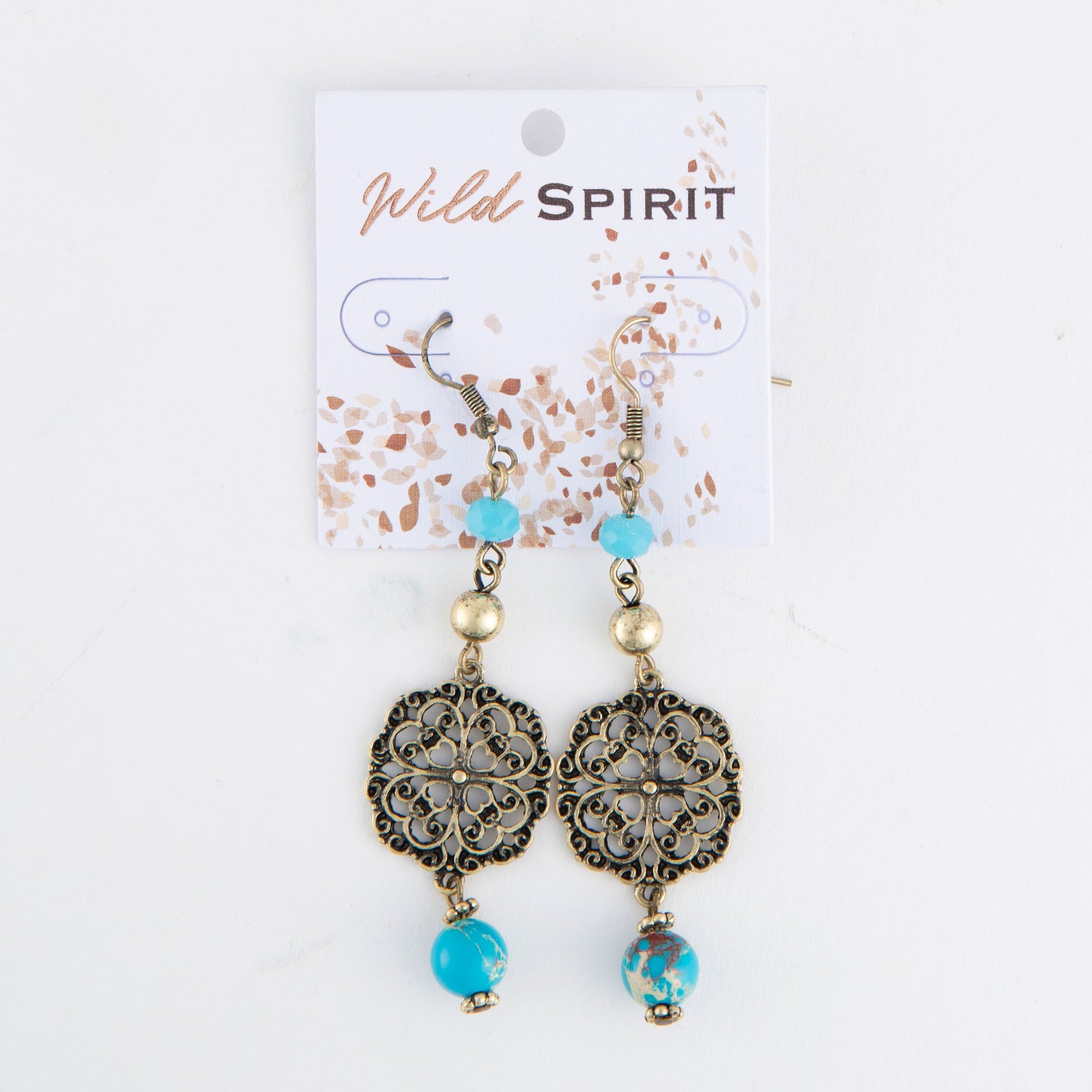Create a unique, artisan look with the Wild Spirit Beaded Boho Earrings. Featuring vibrant turquoise beads and intricately engraved gold pieces, these earrings are certain to make a statement.