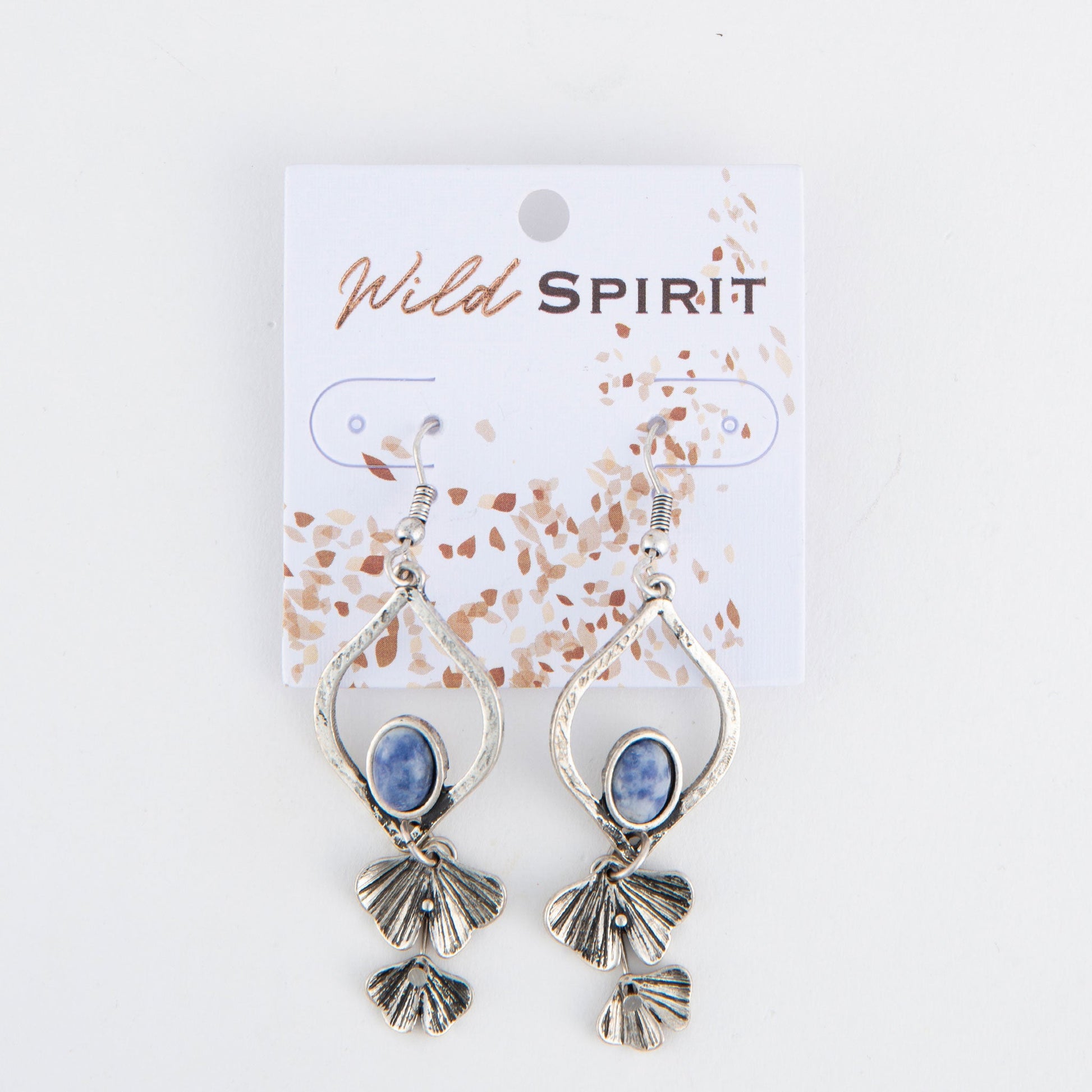 Add a bit of whimsy to your wardrobe with the Wild Spirit Rhombus Earrings. Featuring vibrant Sodalite stones tucked into a silver rounded rhombus shape with delicate leaf charm detailing, these earrings make a statement.