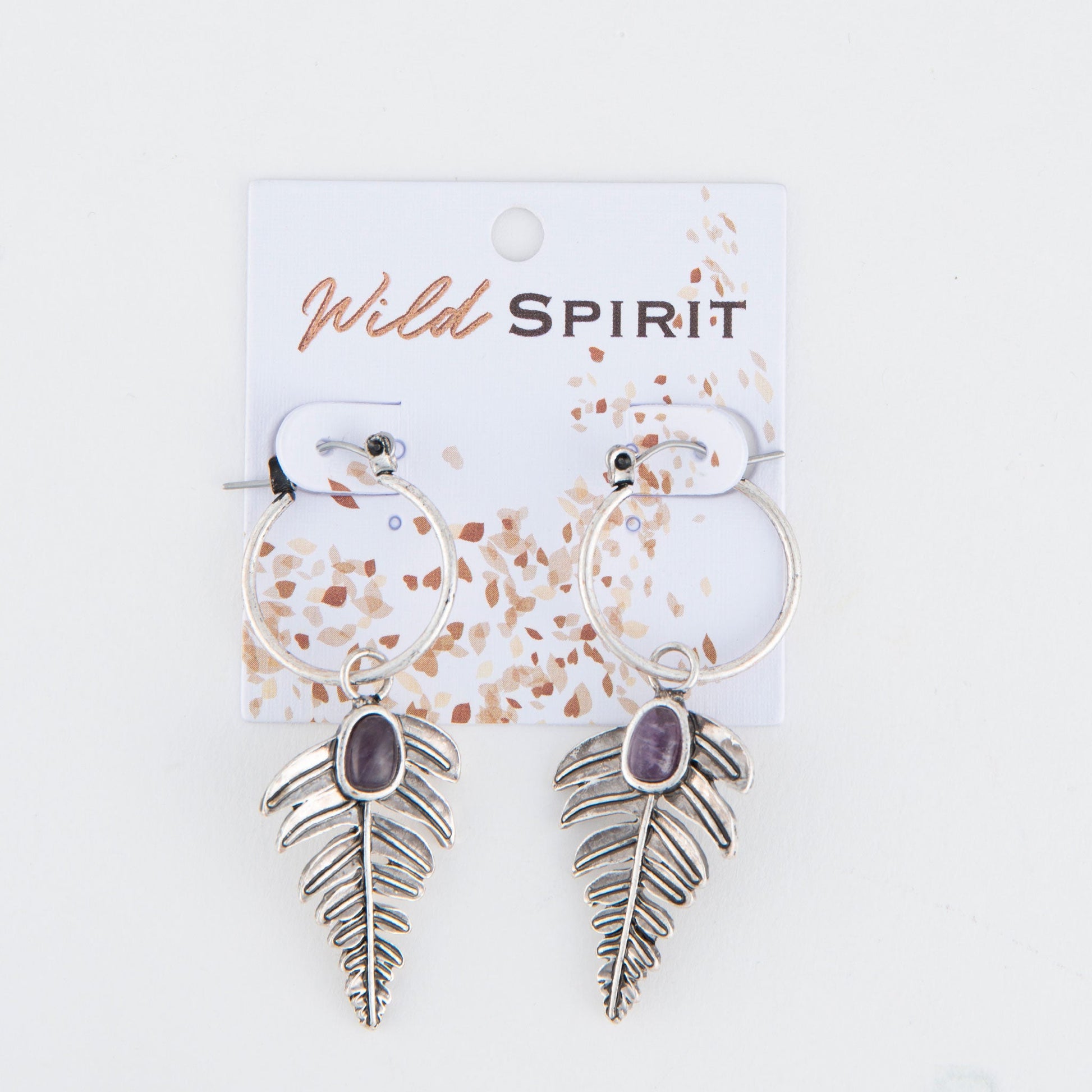 Add a bit of whimsy to your wardrobe with the Wild Spirit Stone Leaf Hoop Earrings. Featuring genuine Amethyst stones tucked into delicate silver leaves dangling off classic silver hoops, these earrings make a statement.
