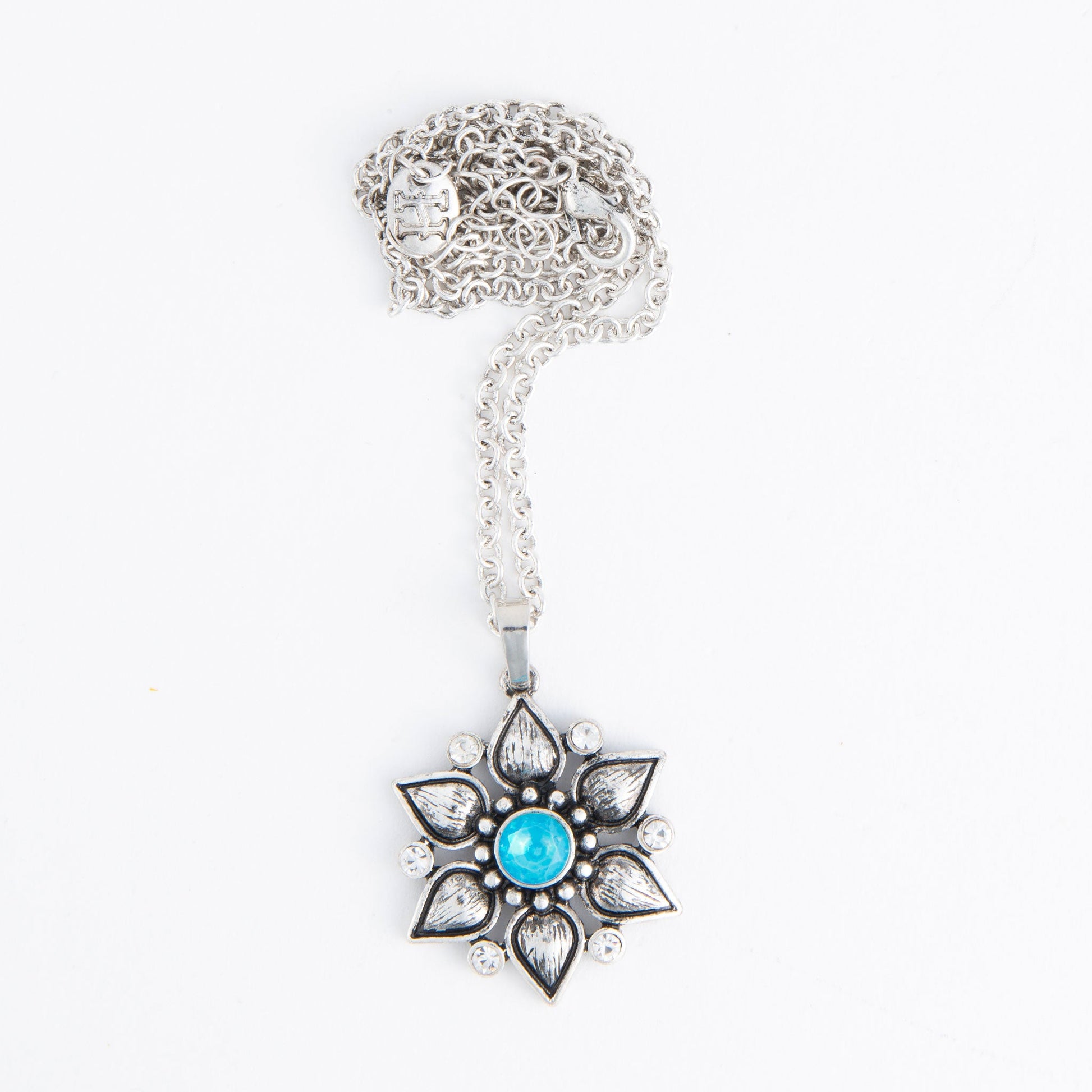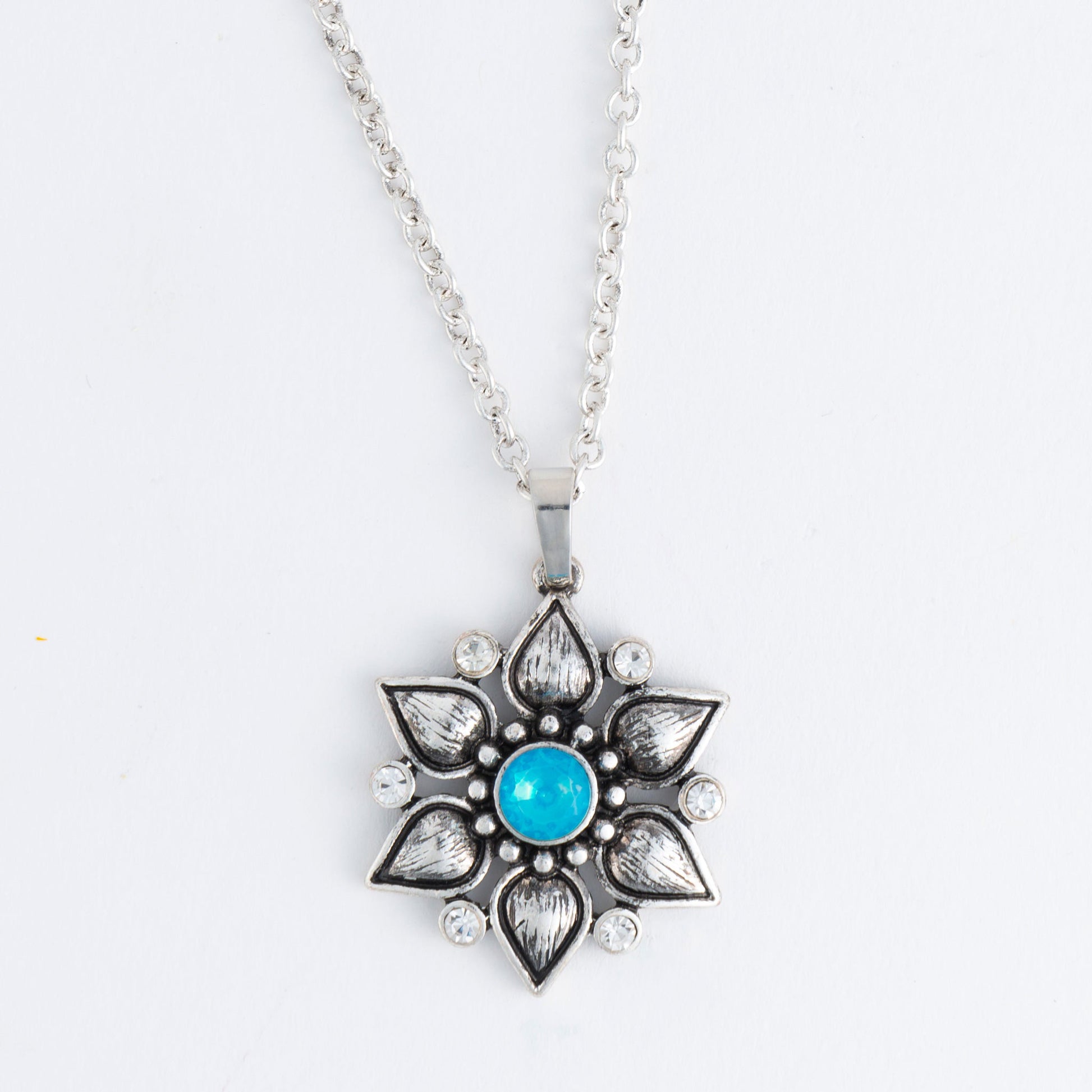 Add a bit of whimsy to your wardrobe with the Zenni Engraved Butterfly Pendant Necklace. Featuring a delicate silver chain with intricately engraved lotus flower pendant, this necklace makes a statement. Its bright blue glass stone only adds to its charm. Beautiful and easy to style, this necklace is sure to become a favorite.