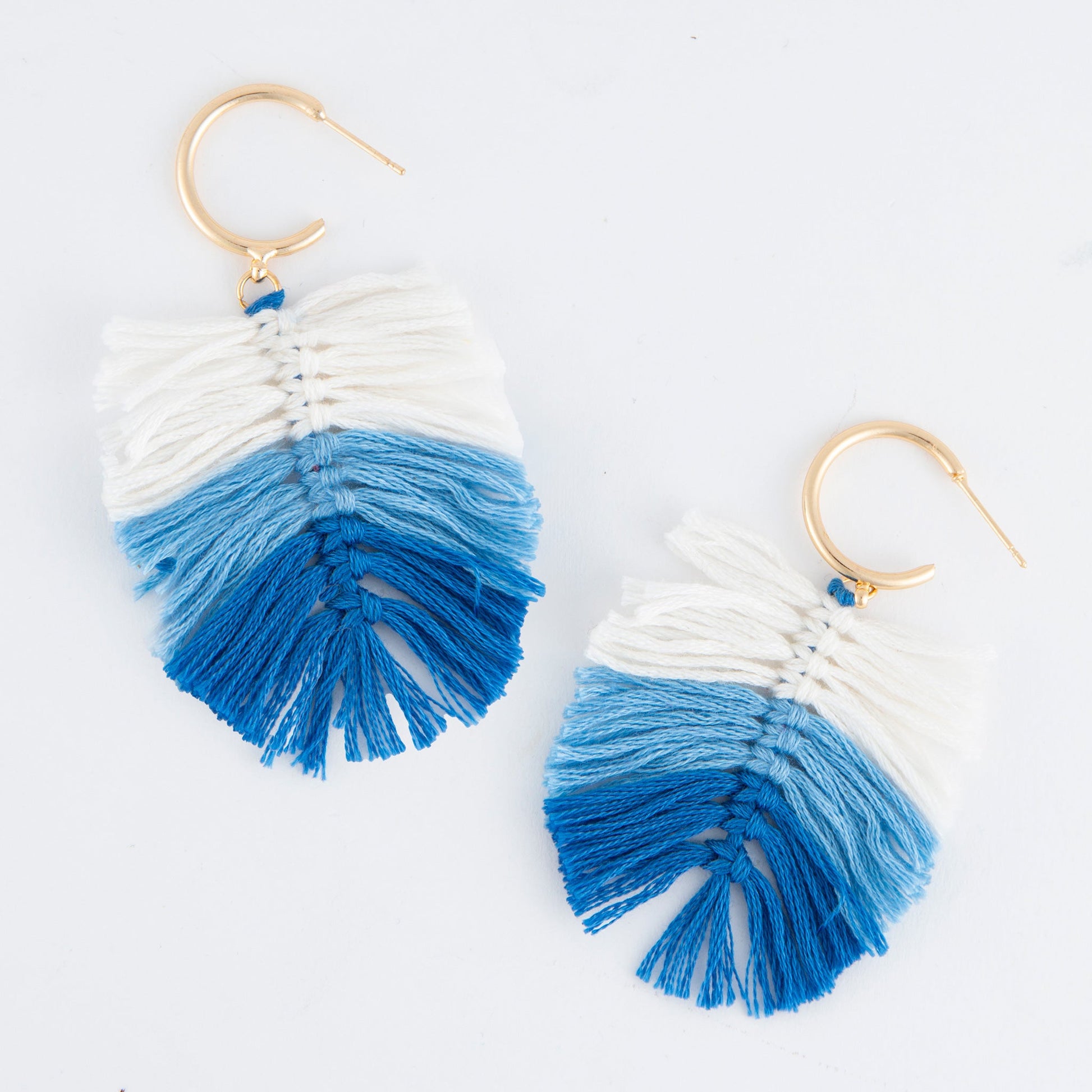 Bold and playful, the Zephyr Fringe Macrame Palm C Hoop Earrings feature a stunning palm leaf design made entirely in macrame. Dangling off a classic C Hoop, these earrings are easy to wear and sure to turn heads.