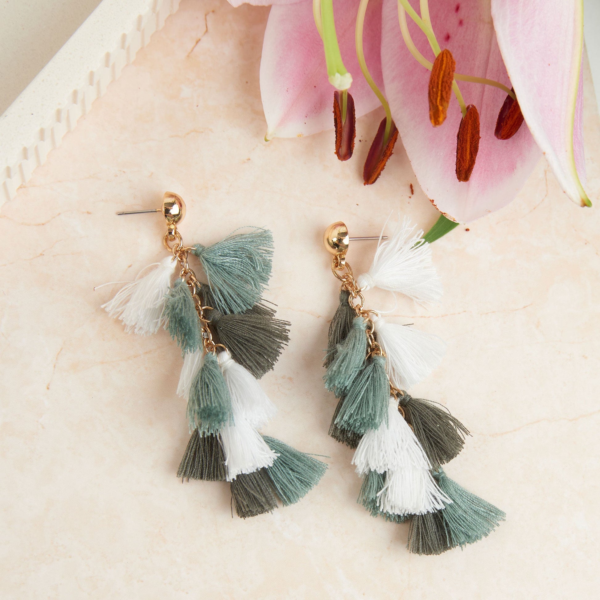 Create a unique, artisan look with the Zephyr Tassel Earrings. Featuring fun tassel detailing cascading from a classic golden post, these earrings add a fun pop of color to any outfit.